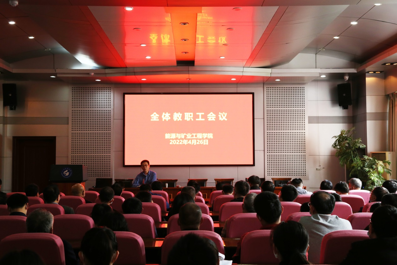 4月26日,第一版主 召开全体教职工大会,传达近期学校相关工作会议精神,部署期中教学检查等工作,对“树师德 正师风”专项整治活动进行动员部署。会议由学院党委书记董桂刚主持。