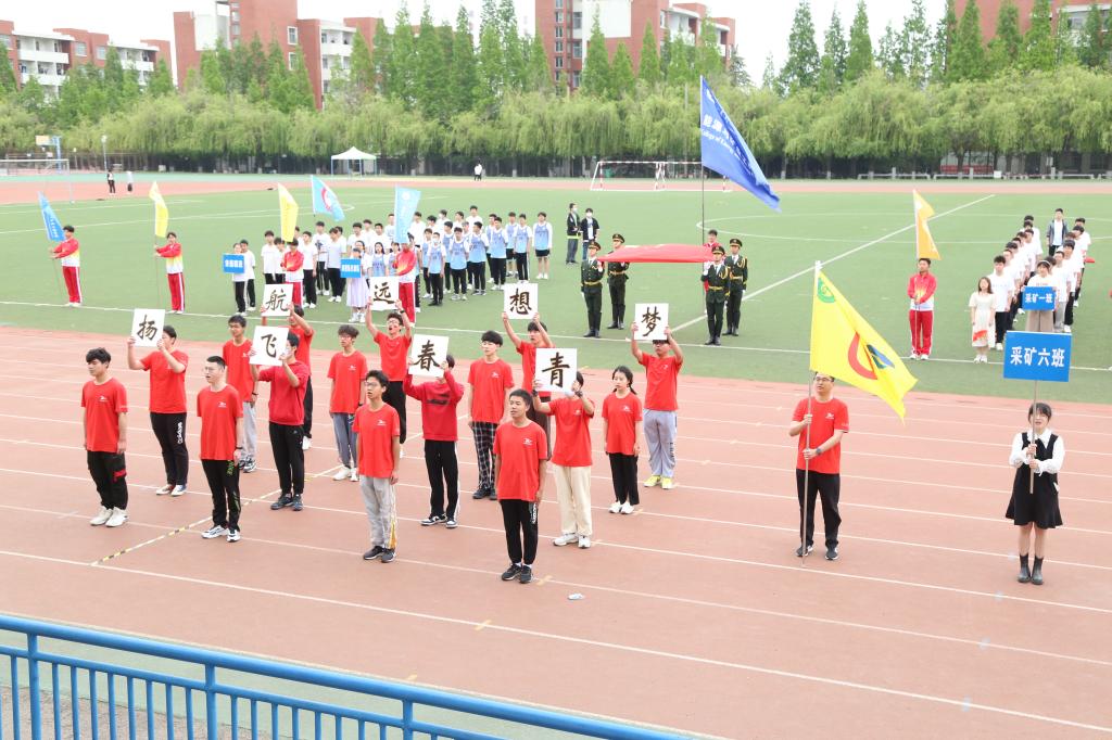风雨操场彩旗飘飘,歌声高昂,国旗护卫队擎着鲜艳的五星红旗入场。在雄壮激昂的进行曲中,第一版主 本科生2021级各班级方队、研究生代表队、田径队代表队以及教职工代表队踏着整齐的步伐,喊着嘹亮的口号,分别以各具特色的方式走过主席台,展现出朝气蓬勃的精神面貌,彰显了“上进、向前、飞跃”的能源风采。