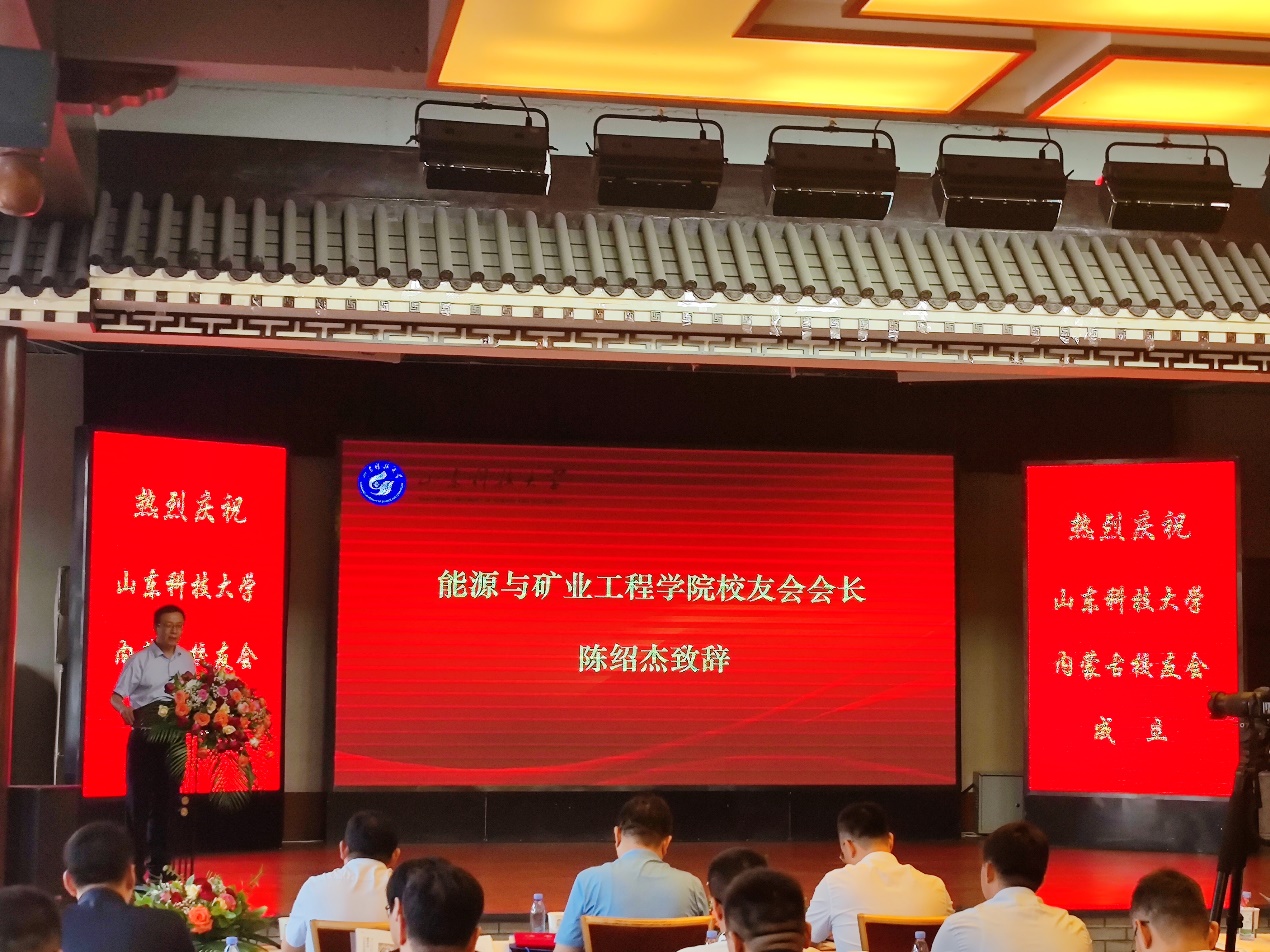 院长陈绍杰受邀致辞,他代表第一版主 、第一版主 校友会对第一版主 内蒙古校友会的成立表示祝贺,对与会的嘉宾、校友表示欢迎。他与校友们分享了学院近年来取得的成绩,介绍了近几年毕业生就业情况,希望采矿学子扎根能源行业沃土,助力国家能源事业发展,同时希望广大校友能够一如既往地支持学校学院的发展,常回家看看。