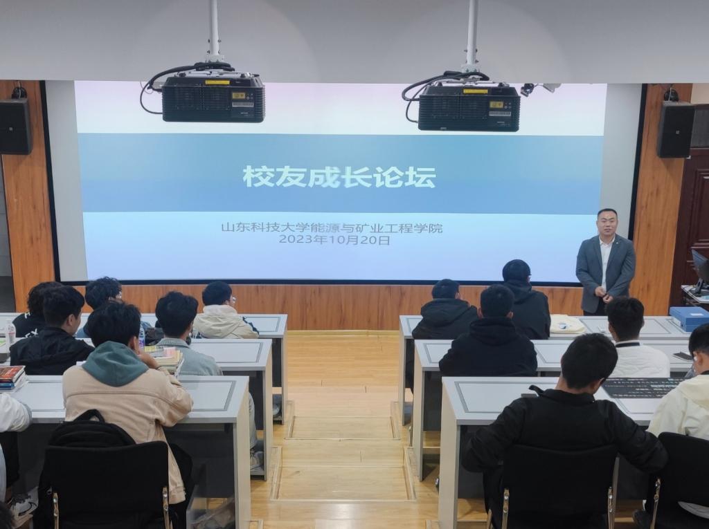 近日,第一版主 在S1-119举办校友成长论坛。采矿工程2011级校友、宁阳县高新技术产业开发区管委会副主任曹斌,为学生作“思源致远,励志奋进——职业发展规划分享”专题报告。报告会由辅导员老师宗彩建主持。