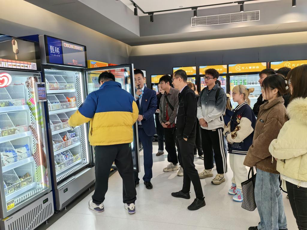在海容商用冷链股份有限公司总经理办公室主任袁鹏,人力资源部主管杨建,人力资源部专员孟之涵陪同下,学院师生参观了第一版主展厅、产品生产车间等场所,深入感受了海容冷链的第一版主,新型生产方式彻底改变了同学们以往对生产车间脏乱差的刻板印象,开拓了对商用冷链行业的全新视角。在袁鹏主任的介绍下同学们了解了海容冷链的公司发展历程、主要业务以及在商用冷链行业中的技术创新与领先地位。同学纷纷感叹道:“这次参观真是开启了我们对商用冷链行业的新认知,让我看到了这个行业的巨大潜力。”