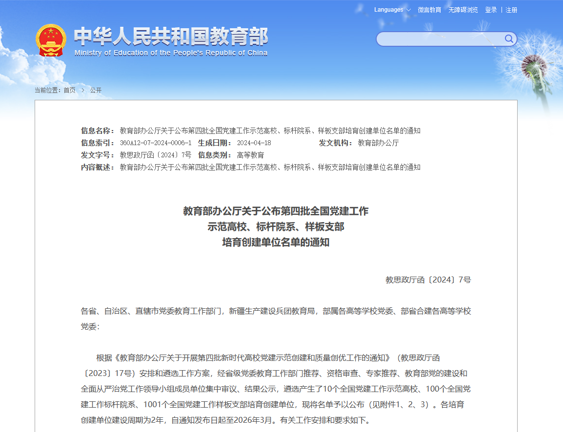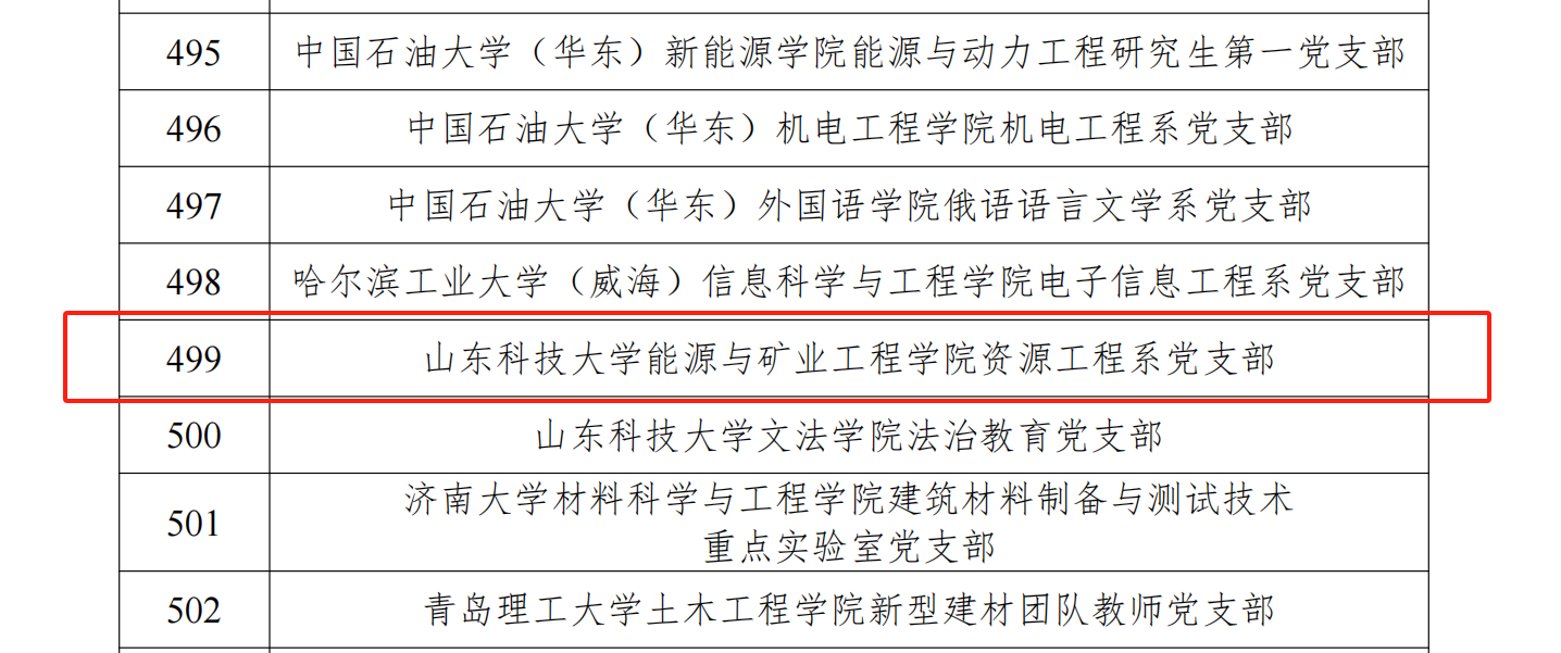 近日,教育部印发通知,公布了第四批全国党建工作示范高校、标杆院系、样板支部培育创建单位名单。我院资源工程系党支部入选全国党建样板支部。这是继矿山灾害预防控制重点实验室党支部后,学院党委获评的第二个全国党建工作样板党支部。