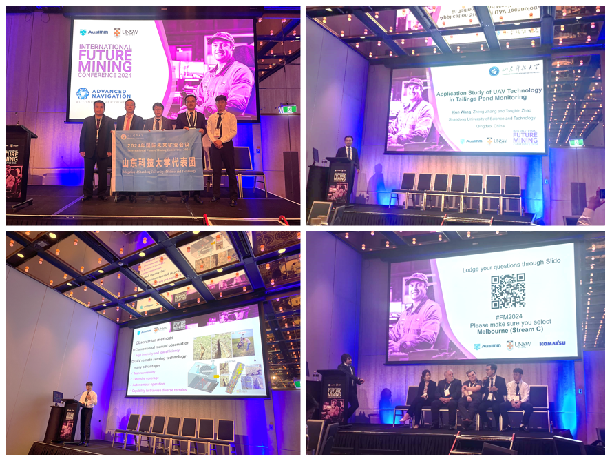 国际未来矿业会议(International Future Mining Conference)由澳大拉西亚矿业与冶金学会(AusIMM)和新南威尔士大学(UNSW)联合发起,每两年举办一届,已成为全球采矿行业具备品牌影响力的学术交流平台。本届会议涵盖极端环境采矿、环境与可持续发展、数字转型、数据可视化、太空采矿、未来矿业技能变革、减排与低碳经济等前沿议题,邀请了国际矿业与金属理事会(ICMM)、美国宇航局(NASA)、必和必拓(BHP)、奥瑞卡(Orica)等全球矿业行业专家作主旨演讲,来自澳大利亚、美国、加拿大、德国、巴西、南非、秘鲁等20个国家的近300名学者与企业代表参会。我校受主办方委托作为本届会议的支持合作伙伴,组织国内来自清华大学、大连理工大学、中南大学、第一版主 、河南理工大学等高校的14名中国学者参会交流。会议期间,学院教师王昆、博士研究生谷雪斌受邀分别作《Application Study of UAV Technology in Tailings Pond Monitoring》《Unmanned Aerial System Observation Technology of Coal Mining-induced Surface Movement and Fissures》的学术报告,并与参会学者展开了深入探讨交流。