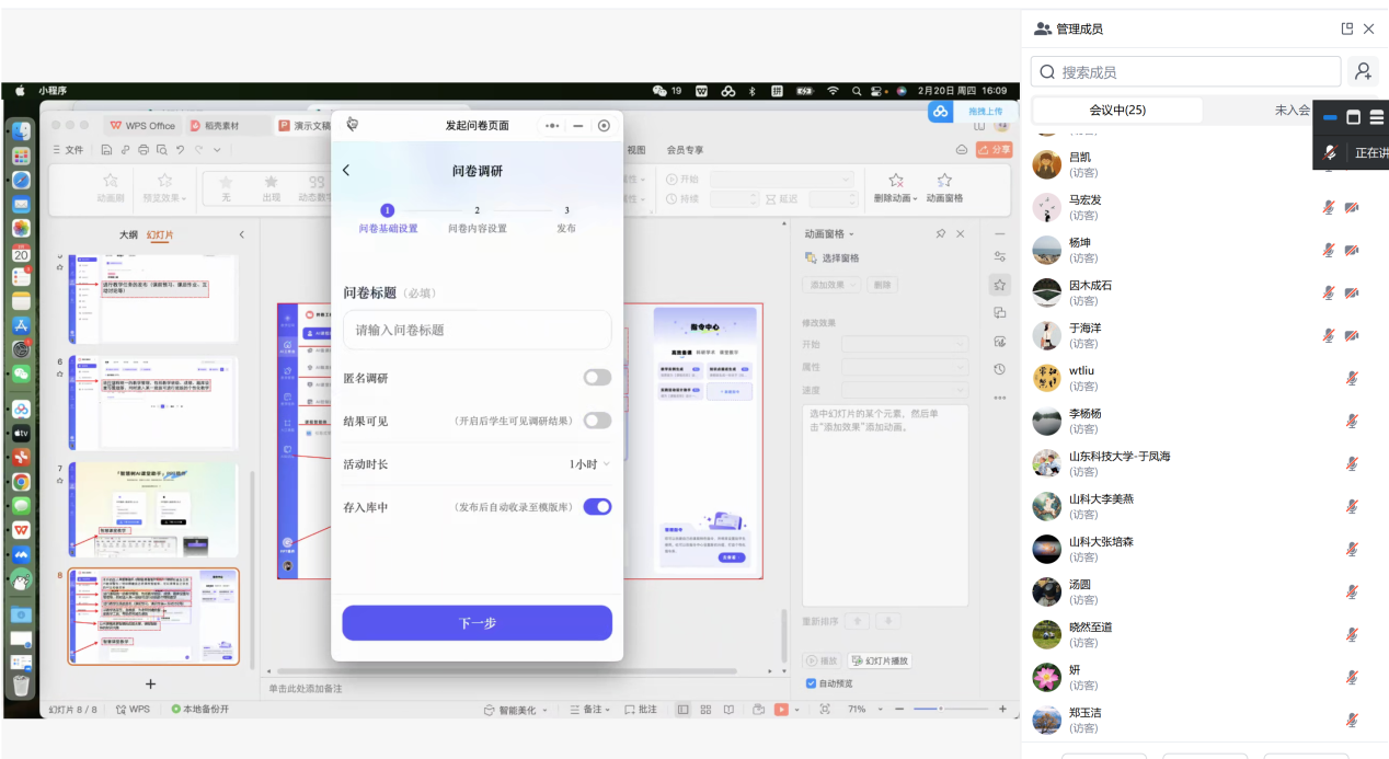 为提升教师信息技术应用水平和信息素养,进一步推动学院智慧金课建设,2月20日,副院长刘伟韬组织召开线上会议,对学院智慧金课建设、智慧课堂教学进行全面指导。智慧树工作人员、学院智慧课程负责人及团队成员参会。