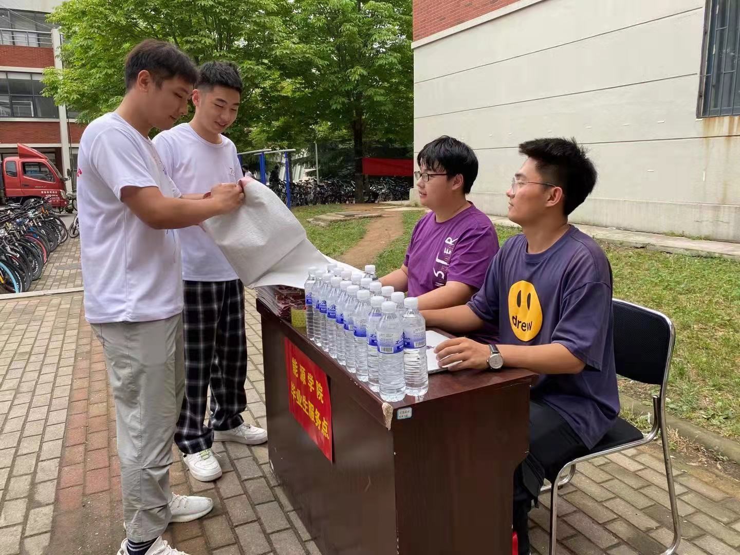 在党员先锋岗中,学院在宿舍楼下设立专门的服务站和岗位,面向毕业生提供行李搬送、发放常用药品和矿泉水、学生人事档案和组织关系转接咨询等一系列服务。毕业生党员在考验基层党组织凝聚力的关键时刻,主动担当作为,用认真负责的工作态度、热情亲切的话语,诉说着对母校的依依不舍和感激之情,发挥了党员先锋模范作用。