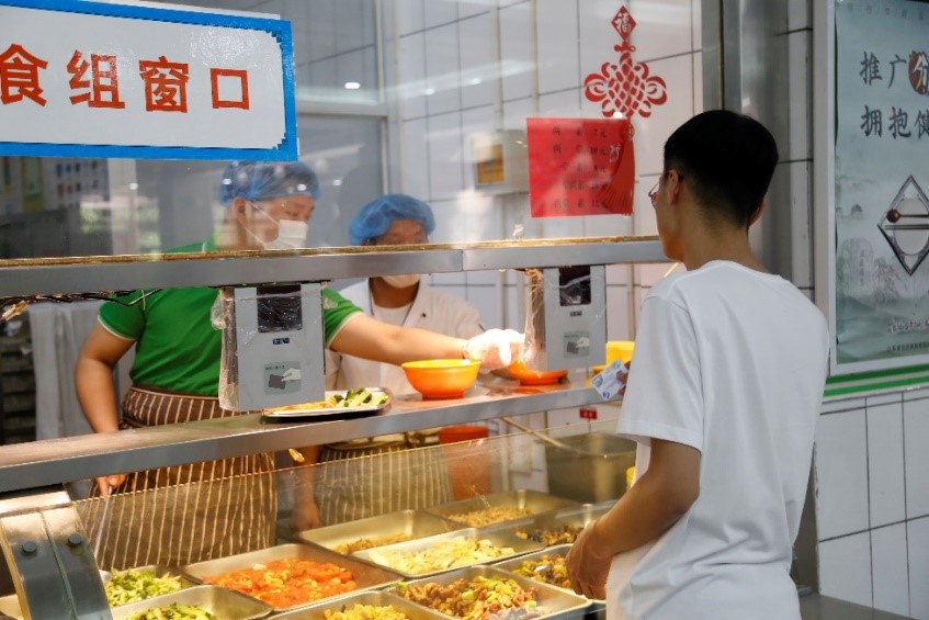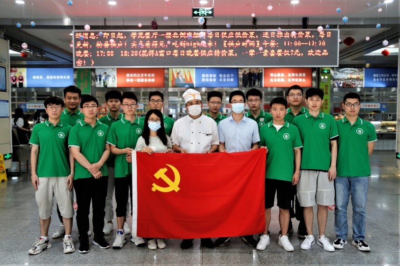 学院组织毕业生党员走进食堂、走入后厨,开展食堂帮厨志愿活动。中午十二点钟,正是食堂即将开饭时间,佩戴党员徽章的十多名毕业生出现在食堂各个角落中。他们有的帮忙打饭,有的收餐盘,有的维护食堂秩序,有的来到餐桌前向正在就餐的大学生提出“光盘”行动倡议。在整个帮厨过程中,志愿者们穿梭在人潮涌动的食堂里。参与帮厨的本科毕业生党员耿志表示,“能够在食堂里为学弟学妹们服务很开心,希望自己能在毕业前多为学校做些力所能及的事情,践行党员的初心与使命。”