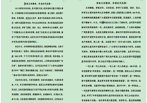 为纪念五四运动,传承新时代中国五四青年精神,近日,第一版主