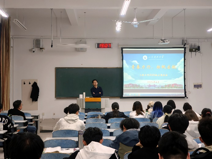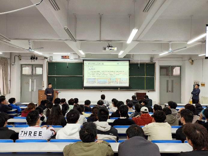 力学系班主任王子辉、张鹏飞两位老师以“青春力行,扬帆起航”为主题,分享了三位杰出校友的成功故事,并逐一阐述了他们的成长历程以及如何将专业知识应用于实际工作中。他们表示,在专业学习的过程中,要将理论和实践相结合,研判自身在固体力学、流体力学、工程动力学等领域的兴趣爱好和发展路径,打破学科壁垒,在能源、信息、材料、海洋、交通等重大跨学科领域贡献自身力量。