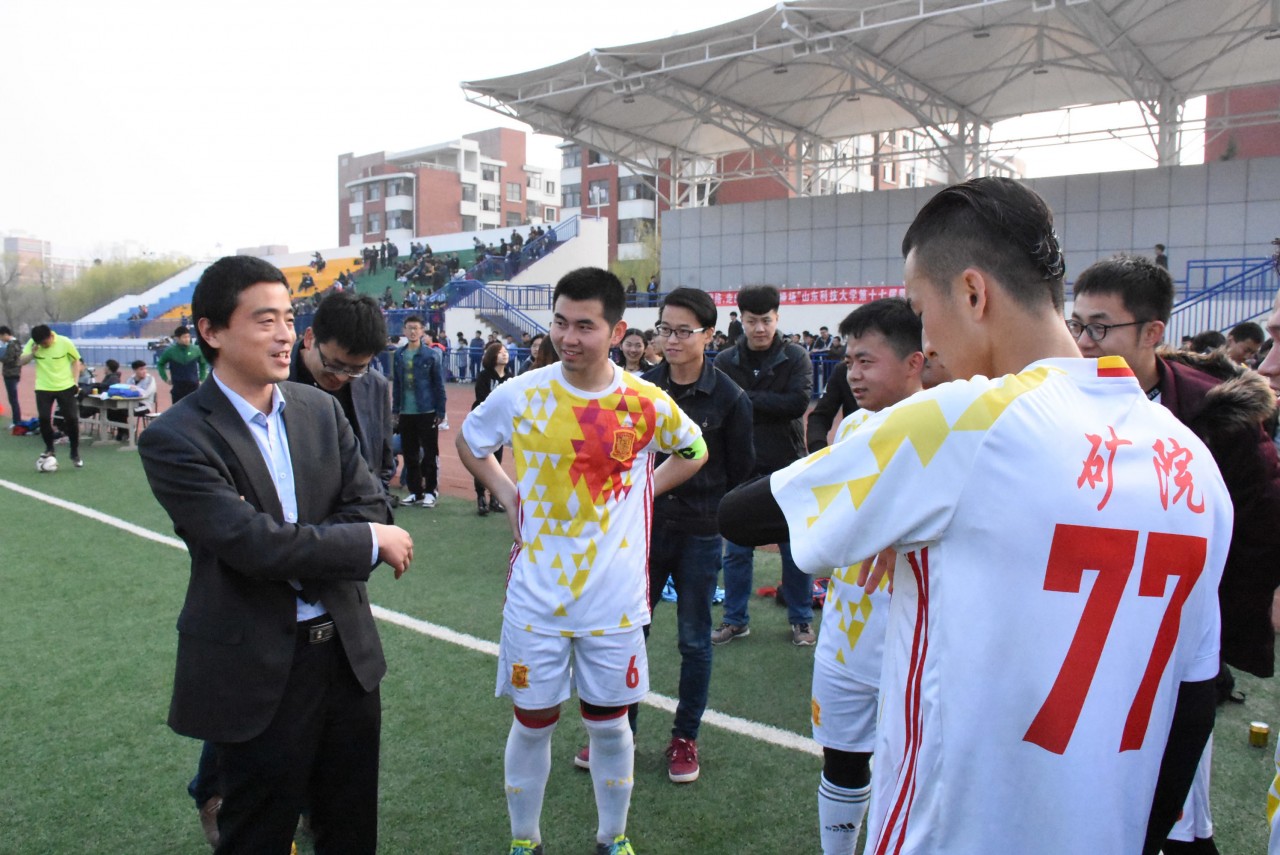 4月6日,第十七届学生男子足球赛迎来冠军争夺战,由矿业学院足球队在风雨操场对阵土建学院足球队。上半场双方平分秋色战成0:0,下半场读秒阶段,矿业学院凭借14号王广宇的角球争顶,1:0绝杀土建学院。矿业学院党委书记梁赛江、党委副书记兼副院长穆玉兵、团委书记马鹤以及团委老师到场观看比赛。