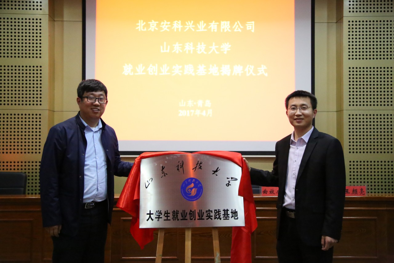 马鹤在致辞中向北京安科兴业科技股份有限公司表示欢迎和感谢,并介绍了我院就业工作、创业指导和人才培养工作,他指出就业创业实践基地建设在教育改革和人才培养中意义重大。曲效成代表北京安科兴业科技股份有限公司对就业创业实践基地揭牌表示祝贺,希望能以此次共建实践基地协议签署为契机,进一步加强公司与学院的交流与合作,努力实现资源共享和优势互补。