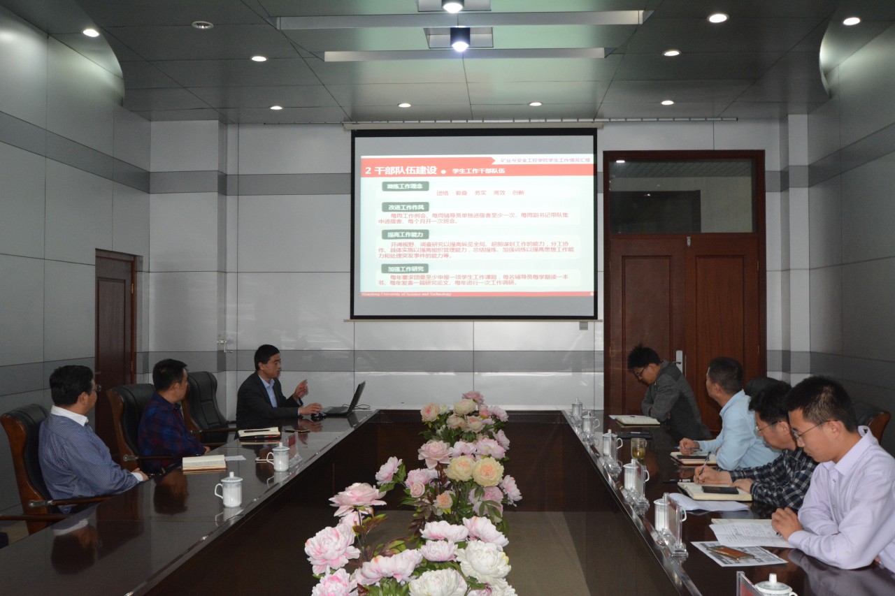 5月3日下午,校党委副书记尹华、学生工作处副处长卞西春到矿业学院调研、指导学生工作。学院党委书记梁赛江、院长谭云亮、党委副书记兼副院长穆玉兵、团委全体辅导员老师及兼职辅导员参加了本次调研座谈会。