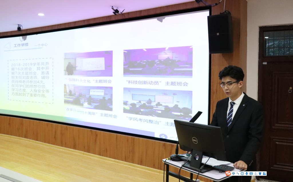 经班级申请、学院审核等环节,共有17个本科班级参加了此次答辩。答辩过程分两个阶段进行:陈述、现场提问。陈述阶段,各班级通过PPT展示过去一年在班级团建、学风建设、科技创新、文化建设、社会实践等方面的各项成绩,展示着班级最亮点。精彩的陈述过后,评委老师结合各班实际情况从团建、学风、科研、班级活动等方面提出问题,现场进行了积极的互动交流。团委书记马鹤对同学们的表现以及在过去一年中所取得的各项成绩表示肯定,希望各班以此次答辩会为契机,互相借鉴学习,进一步提高班级管理服务水平,建设内涵与品质并重的先进班级。