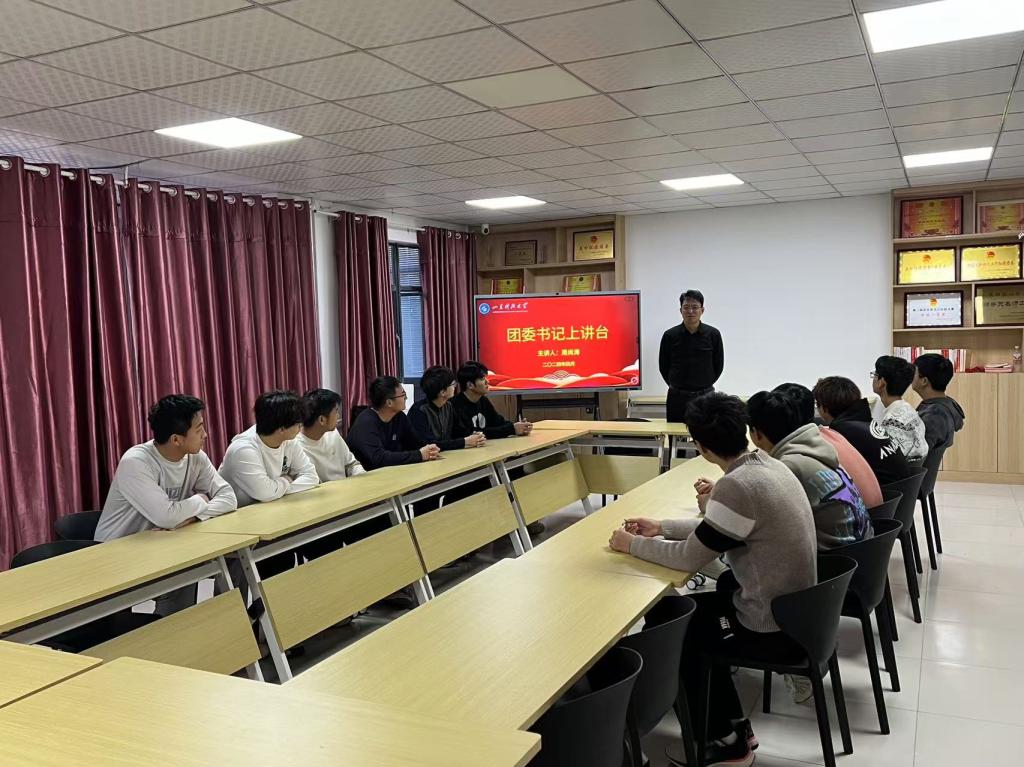 4月23日下午,第一版主 团委书记周尚涛走进第一版主 “一站式”学生社区“嘉源驿站”,在“思享汇”教室开展团委书记上讲台活动,给第一版主 学生会的同学们上了一堂思想深刻的主题团课。