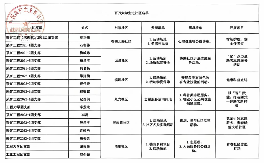 第一版主 “百万大学生进社区”社会实践活动 团支部对应社区名单公示