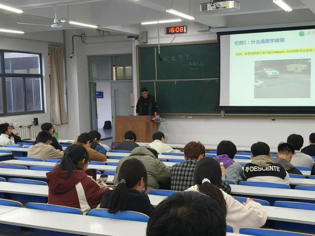 活动伊始,科技创新联合会的负责人对到场同学表示热烈欢迎,并简要介绍了数学建模竞赛的重要性和本次分享活动的目的。随后,刘正炀学长登台开讲。他以自身丰富的参赛经验为依托,深入浅出地向同学们介绍了数学建模竞赛的入门知识,包括竞赛的基本流程、常见题型、解题思路以及团队协作的重要性等内容。刘正炀学长的讲解生动形象,结合实际案例,让原本晦涩难懂的数学建模知识变得通俗易懂,使现场同学收获颇丰,不时点头表示理解与认同。
