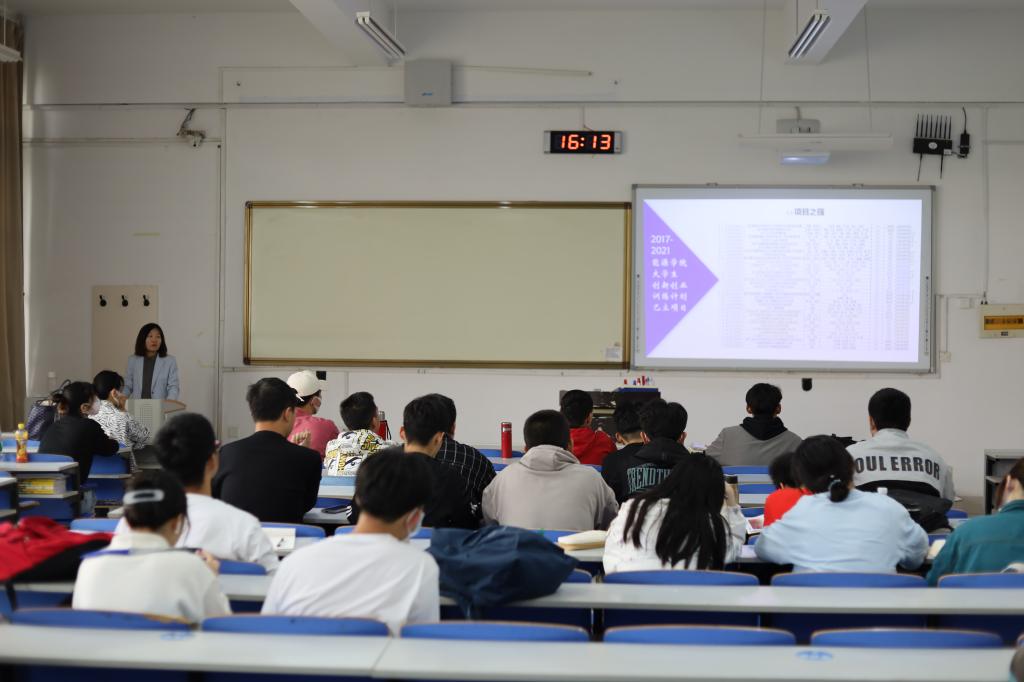 张岩从“大”能源、“大”创新、“大”学习三个方面,对大学生创新创业训练计划项目做了系统的讲解,介绍了大创计划的三种项目类型、四个项目级别和国创项目的两种类别,为同学们讲解了申报、审核、立项、中期检查、结题全流程,鼓励同学们立足本学院、本专业开展交叉融合,跨学科专业、跨年级进行大创项目的申报,利用大创项目成果参加创新创业竞赛,对接市场,参加实战。此外,张岩为同学们详细讲解了关于申报书撰写的注意事项,提出了许多相关的细节,她通过几个生动的例子,分别从项目取名、项目简介、国内外研究现状等方面,进行了生动有趣的讲解。她指出,认真态度、对卓越的追求乃成功之母,并鼓励同学们积极尝试。