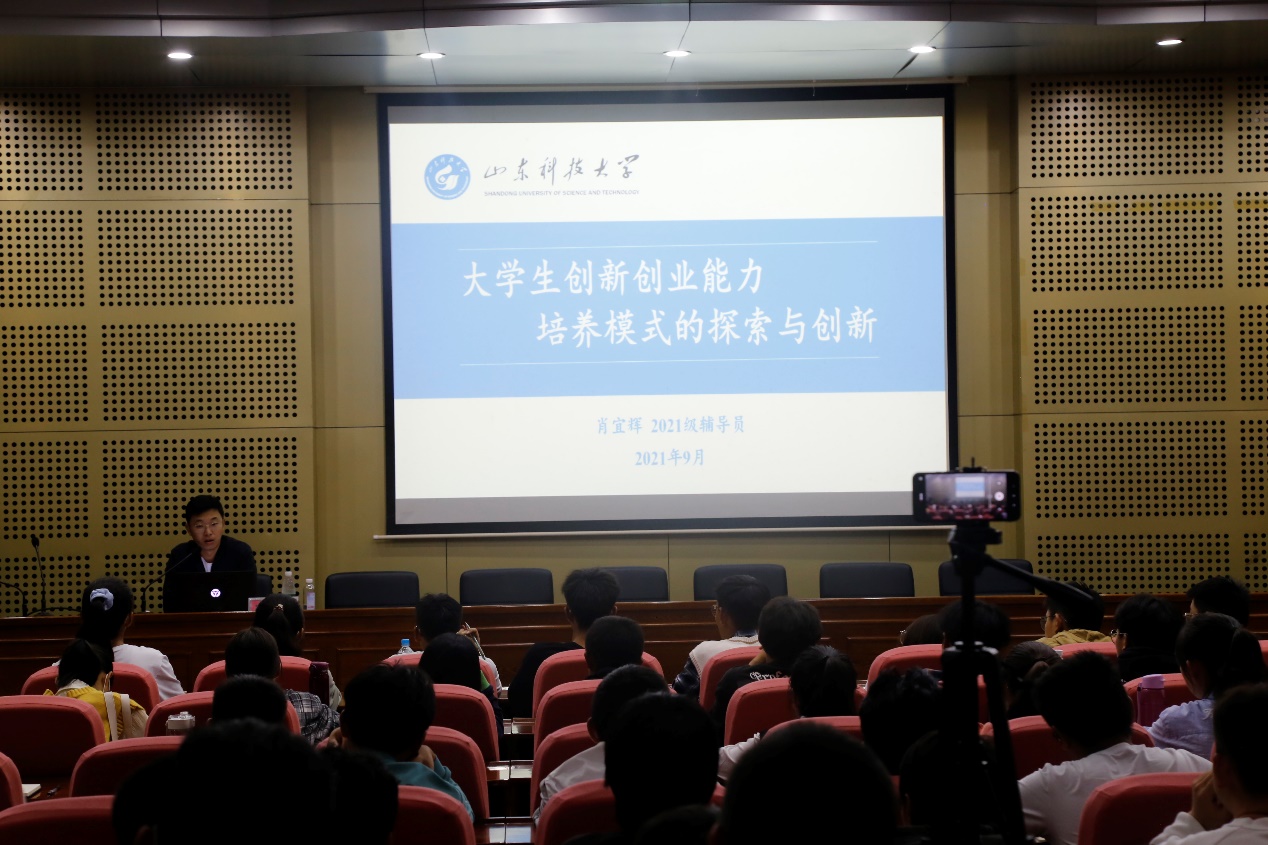 9月26日,第一版主 “赋能学堂”第一课开讲。2021级辅导员肖宜辉担任主讲人,授课内容为“大学生创新创业能力培养模式的探索与创新”,第一版主 2021级全体学生参加。
