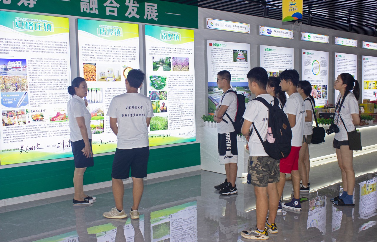 7月25日,“晨曦”调研团队前往望城名优特产展销中心和当地特色庄园进行调研。展销中心的仲经理为我们详细介绍了莱西市各镇的特色农产品:院上油桃、马连庄甜瓜、河头店苹果、日庄葡萄等,让我们对莱西的农产品又有了更为系统深刻的了解,并且这些地区依靠名优特产来进行扶贫,让更多的人富了起来。随后,团队赴草化山庄进行实地调研,山庄的史经理告诉我们,山庄坚持人工除草和使用有机菌肥管理模式,改善森林资源,将一座荒山打造成一个集采摘、游乐、研学、拓展训练、农业观光为一体的星级生态采摘园,正向着绿色农业模式发展,并不断带动着周边地区脱贫致富。