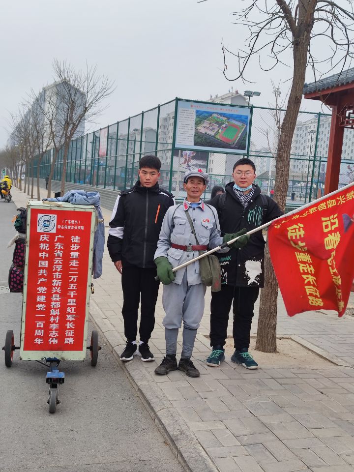 因种种原因,他重走长征路的梦想一直没能实现。现儿女已成家,今年又是中国共产党成立100周年,老人家坚定了决心,为达成心愿稍作准备后就立刻行动起来。带着毕生的梦想,李志伟老人于2021年4月15日在中国工农红军长征第一站——江西省赣州市瑞金出发,推着50多公斤重的自制手推车(干粮、四双解放鞋、五面红旗、一部手机,一顶帐篷、两套红军服、一个军用水壶等随身物品就是全部行囊)已徒步经过江西、福建、广东、湖南、广西、贵州,甘肃,于2022年1月21日到达宁夏彭阳县,历时9个多月。