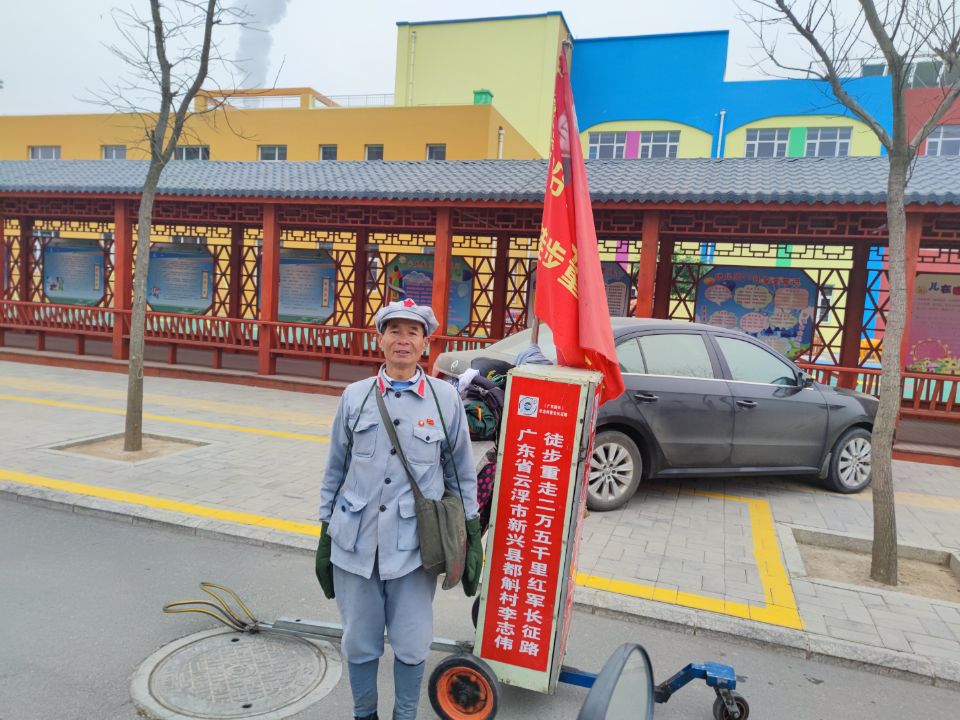 据了解,李老先生今年62岁,是广东省云浮市新兴县都斛村人,从小就崇敬毛主席,热爱红军。他上学时在课本上了解到红军长征爬雪山过草地克服重重艰难险阻徒步二万五千里,最终取得胜利的光辉历程后,被红军精神深深感动,从小就立志要向他们学习,沿当年红军足迹,用双脚重新丈量二万五千里的长征路。