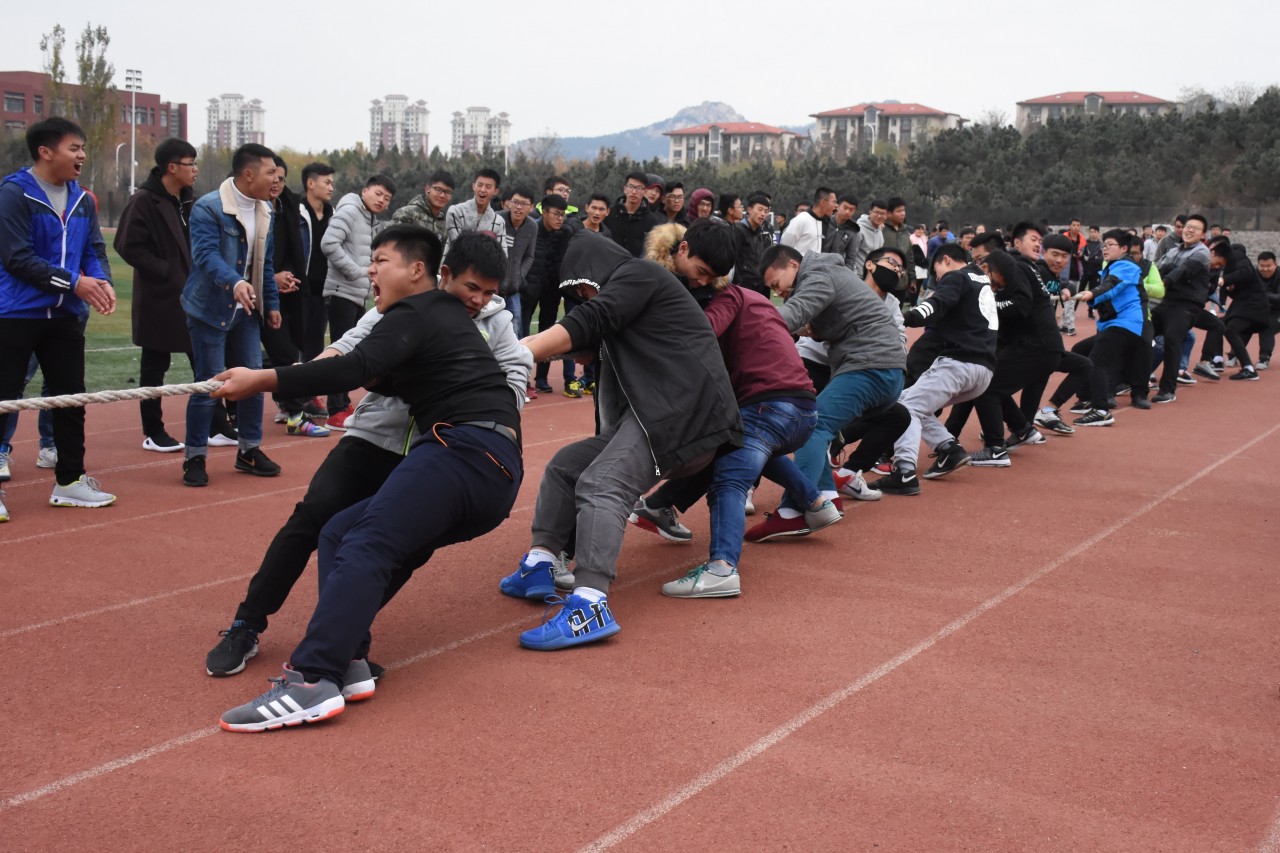 为增强班级凝聚力,发扬团队精神,11月19日,矿业学院于高地操场组织新生拔河比赛。比赛由团委老师郭磊主持,2017级新生参加比赛。