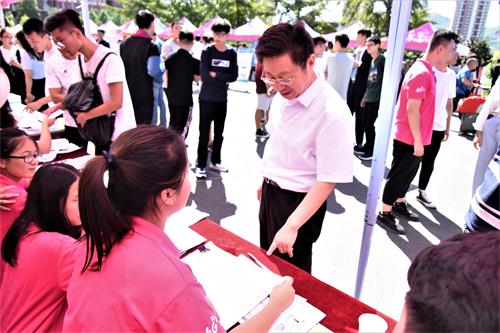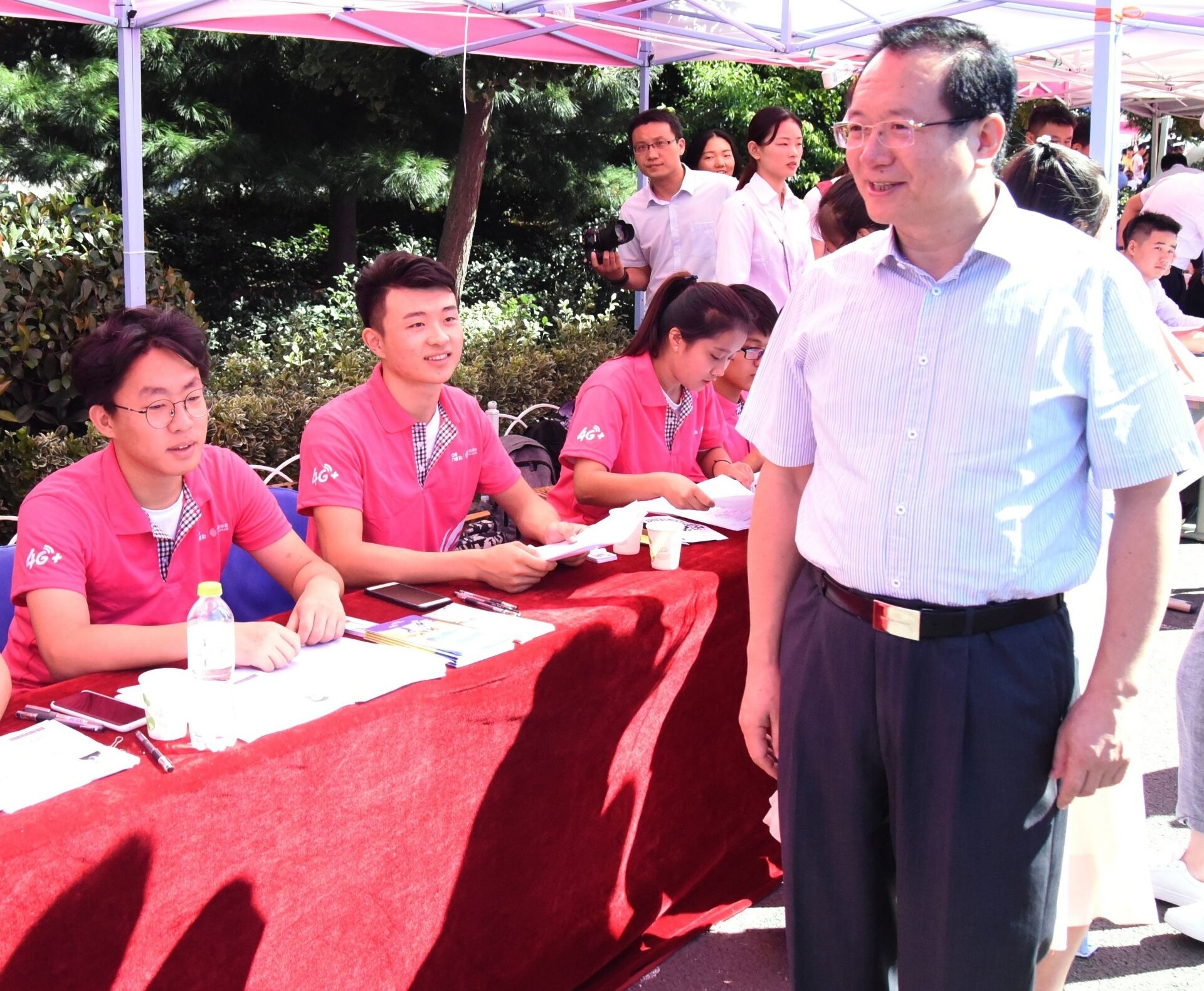 罗公利来到矿业学院新生报到处,亲切慰问了烈日下辛勤工作的学生工作人员,认真询问迎新工作的进展情况。他强调,迎接新生时,一定要热情,要为新生与家长们送上贴切的、细致的服务,注重服务工作的“精”与“细”。