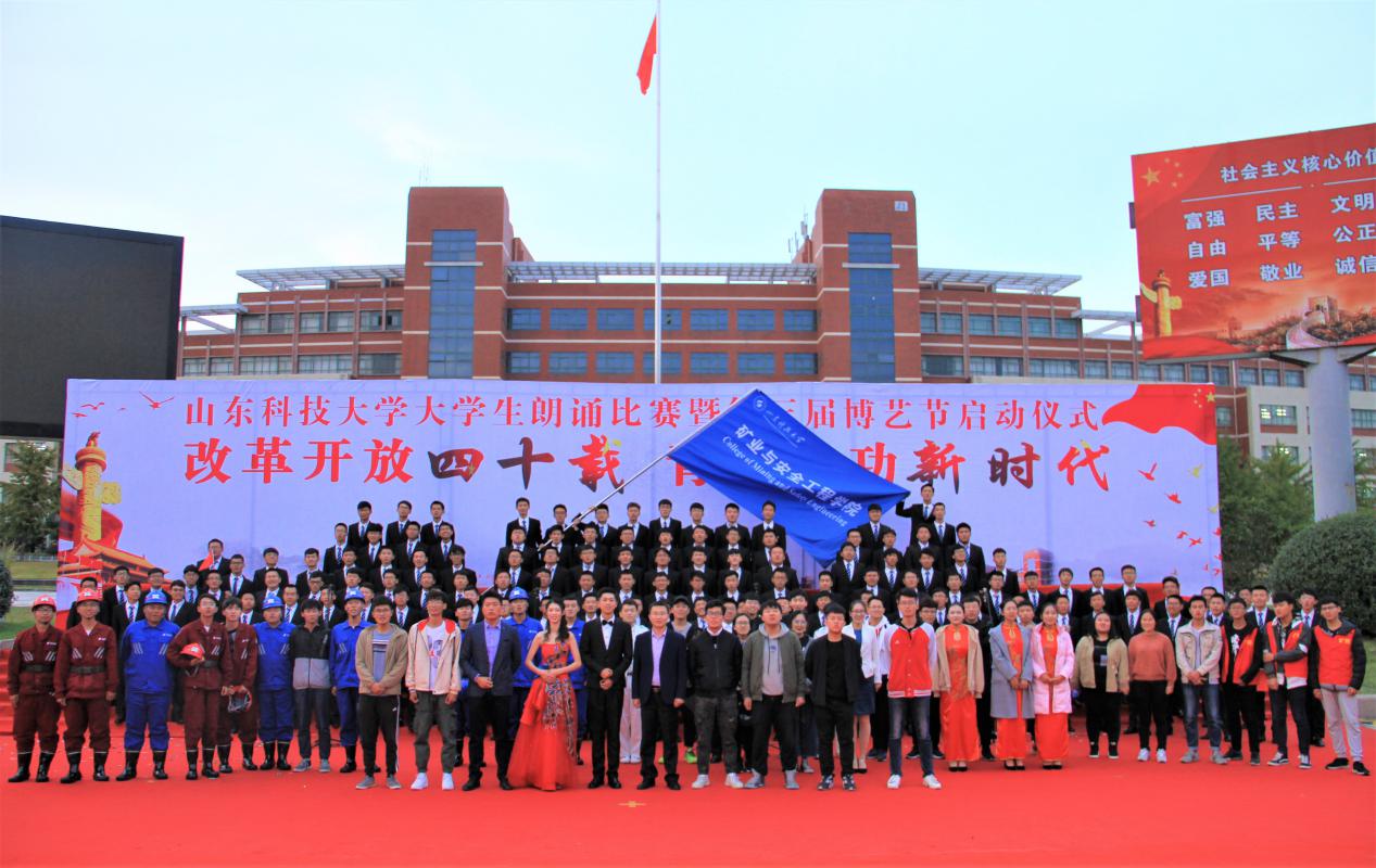 “改革开放四十载,青春建功新时代”大学生朗诵比赛暨第三届博艺节启动仪式在泰山广场隆重举行,全校十六个学院参赛。矿业与安全工程学院自创诗词《献给改革开放40周年,我与祖国共未来》,最终取得九点六三分的优异成绩,荣获朗诵比赛的一等奖。