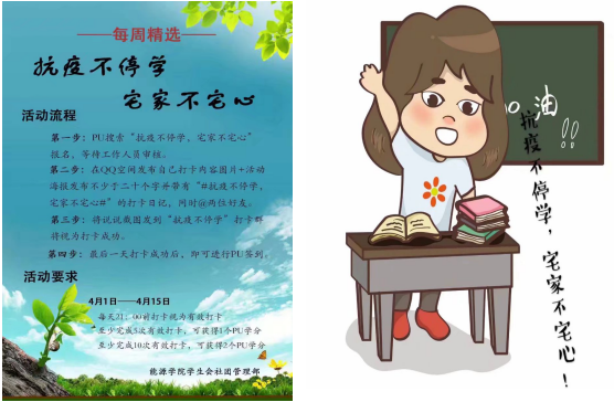 学生会利用线上平台举办了“抗疫不停学,宅家不宅心”主题打卡活动。