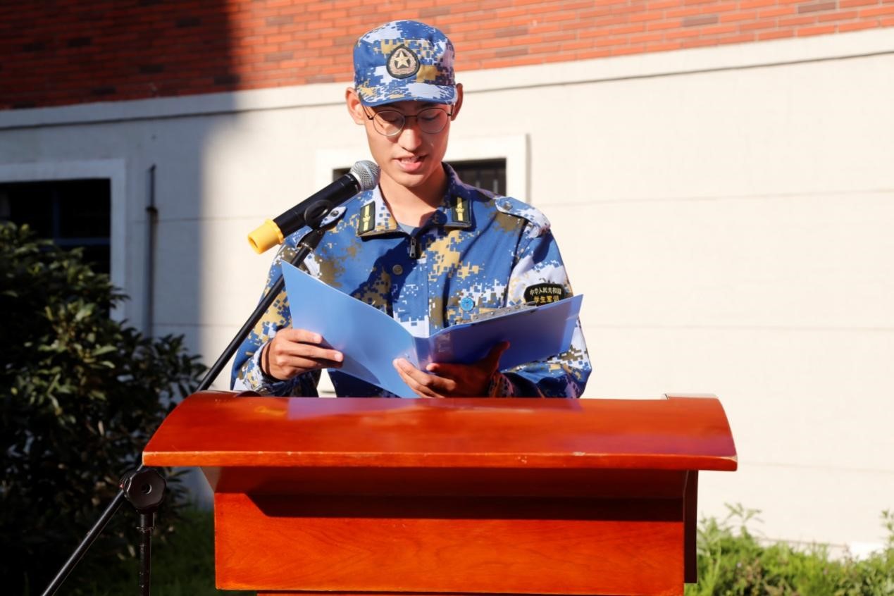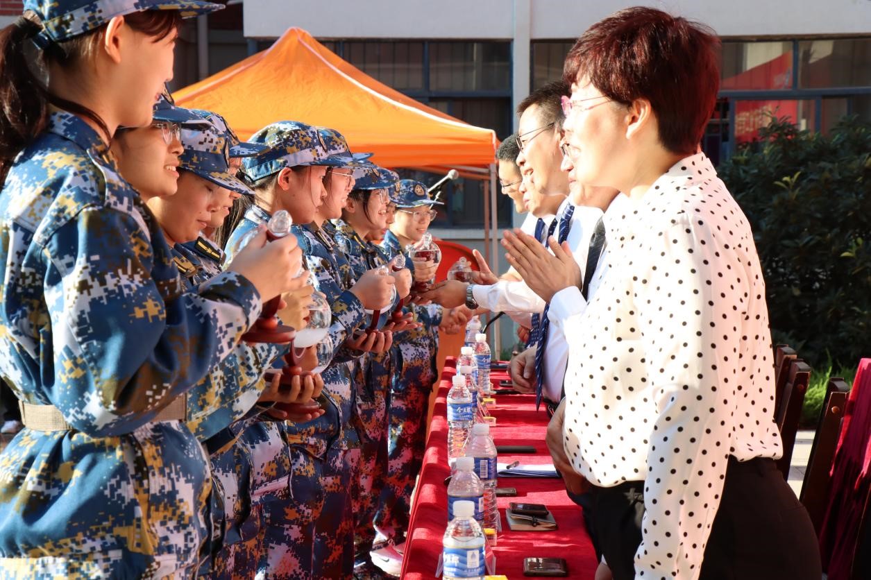 见面会上,第一版主 党委书记董桂刚为军训连队授旗。