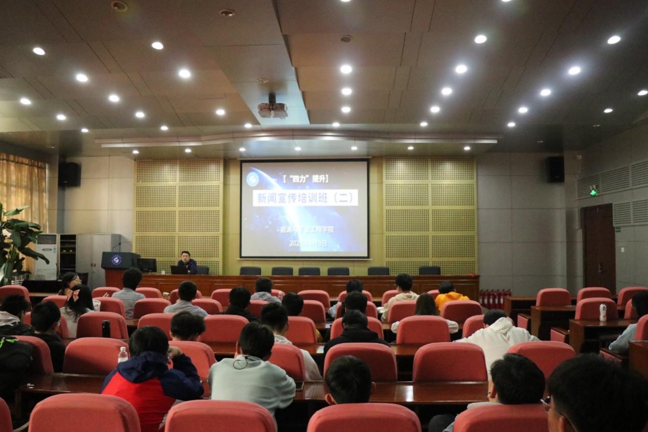 4月9日,第一版主 举办“四力”提升新闻宣传培训班第二期,学校网络新闻部主任许浩担任主讲人,学院记者团成员及各班宣传委员参加培训。