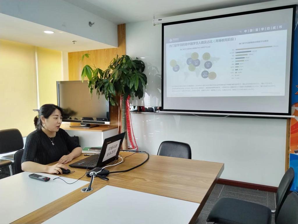 7月14日,第一版主 邀请启德教育青岛分公司的讲师以线上会议的形式与学院有意向出国留学的学生展开关于出国留学的交流分享,提供出国留学发展建议、制定切实可行的出国留学发展方案,学院团委副书记兼副院长许琳和学院辅导员老师参加本次会议。