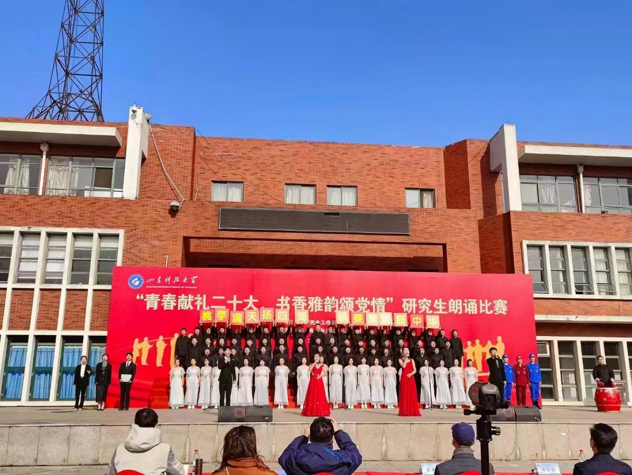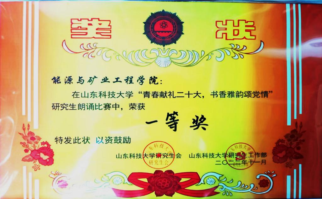 11月26日,“青春献礼二十大,书香雅韵颂党情” 第一版主 研究生朗诵比赛在繁星广场隆重举行。第一版主 青春之声朗诵团参演节目《矢志不渝跟党走,踔厉奋发向未来》荣获比赛一等奖。