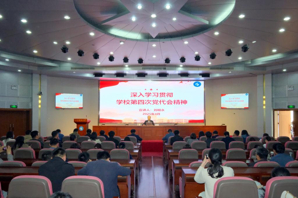刘明永从学校第四次党代会基本情况、会议的重要意义和主要成果、会议主要精神以及确保第四次党代会精神落实见效等四个方面对学校第四次党代会精神进行了深入解读。他指出,学校第四次党代会实事求是地总结了学校第三次党代会以来取得的显著成绩和宝贵经验,深刻分析了存在的问题和面临的形势,确定了今后一个时期的目标思路和战略部署,明确了今后五年的主要任务和具体举措,对以高质量党建引领学校事业高质量跨越式发展作出了系统安排。