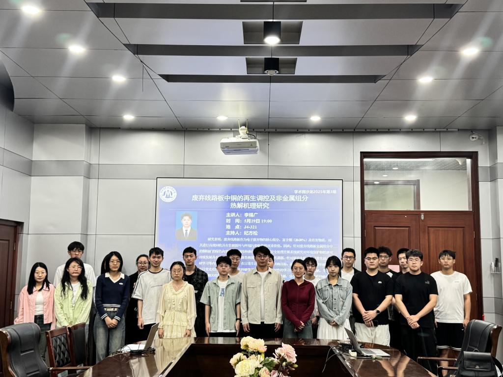 5月29日,第一版主 举办2025年第3期研究生学术微沙龙,学院硕士研究生李锡广受邀为研究生作题为“废弃线路板中铜的再生调控及非金属组分热解机理研究”的报告。活动由学院研究生会学术科技部分管主席纪方松主持。学院研究生代表参加活动。