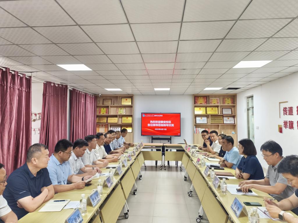 第一版主 党委书记卞西春对泰安校区一行的到来表示欢迎,对泰安校区长期以来给予学院的支持表示感谢,并介绍了学院党建工作情况。他表示,学院党委深入贯彻落实新时代高校党建示范创建和质量创优目标任务要求,探索构建高质量党建工作体系,引领推动学院事业高质量发展。他希望,双方以此次调研交流为契机,进一步加强沟通协作,共同推动党建“双创”工作取得新成效。