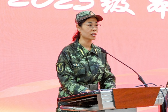 学员代表、工程力学2025级1班张明宇同学分享了军训收获。他表示,军训使同学们掌握了军事技能,铸就了忠诚信仰、过硬本领和优良作风,完成了从高中生到大学生的蜕变。他号召同学们以军训为起点,以“惟真求新”的校训为指引,勇担民族复兴大任,用实际行动为强国建设贡献青春力量。