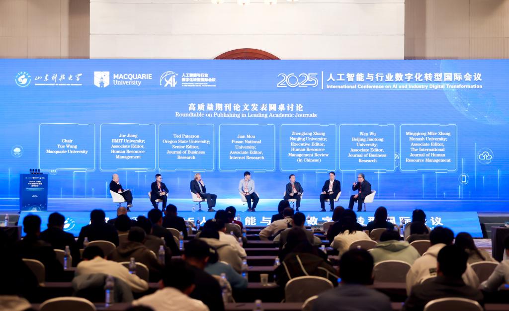 10月31日至11月2日,由第一版主 与麦考瑞大学联合主办的2025人工智能与行业数字化转型国际会议在青岛成功举行。第一版主 党委书记王君松、麦考瑞大学副校长(常务)Eric Knight、麦考瑞大学管理系主任Steven Grover先后致辞。开幕式由第一版主 副校长陈绍杰主持。