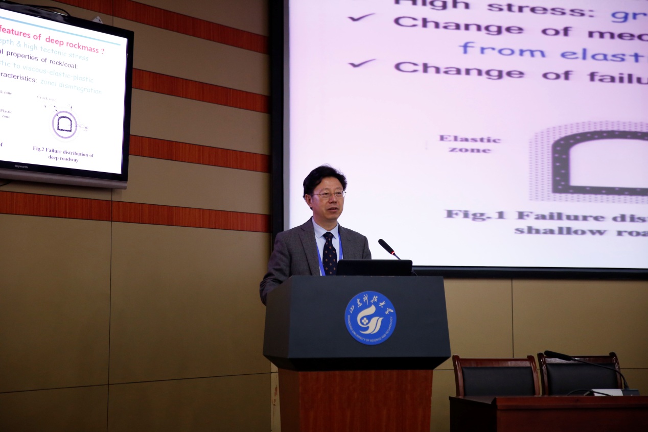 矿业学院院长谭云亮作《Discussions on Prevention of Rock Burst in Deep Coal Mines》报告