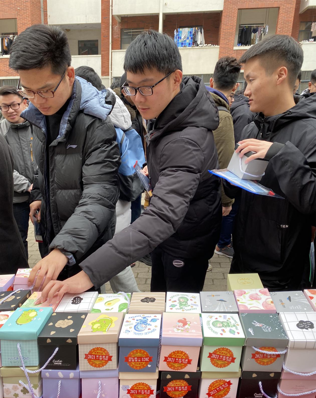 考研幸运礼包包含考研祝福福盒和“沿途有你”考研加油包,学院在礼包中精心准备了糖心苹果、赣南脐橙、糕点、牛奶、棒棒糖和考研专用笔袋,每一份礼物都不尽相同,爱意满满。祝福福盒分为心想事“橙”盒、及第“糕”中盒、牛”气冲天盒、开花结“果”盒、考试倍“棒”盒,供同学们随机抽取;“沿途有你”考研加油包装有考试专用涂卡笔、中性笔、橡皮等考试用品,且考虑到疫情的影响,学院在加油包中特别准备了具有独立包装的口罩,提醒同学们提高安全意识,做好防护。