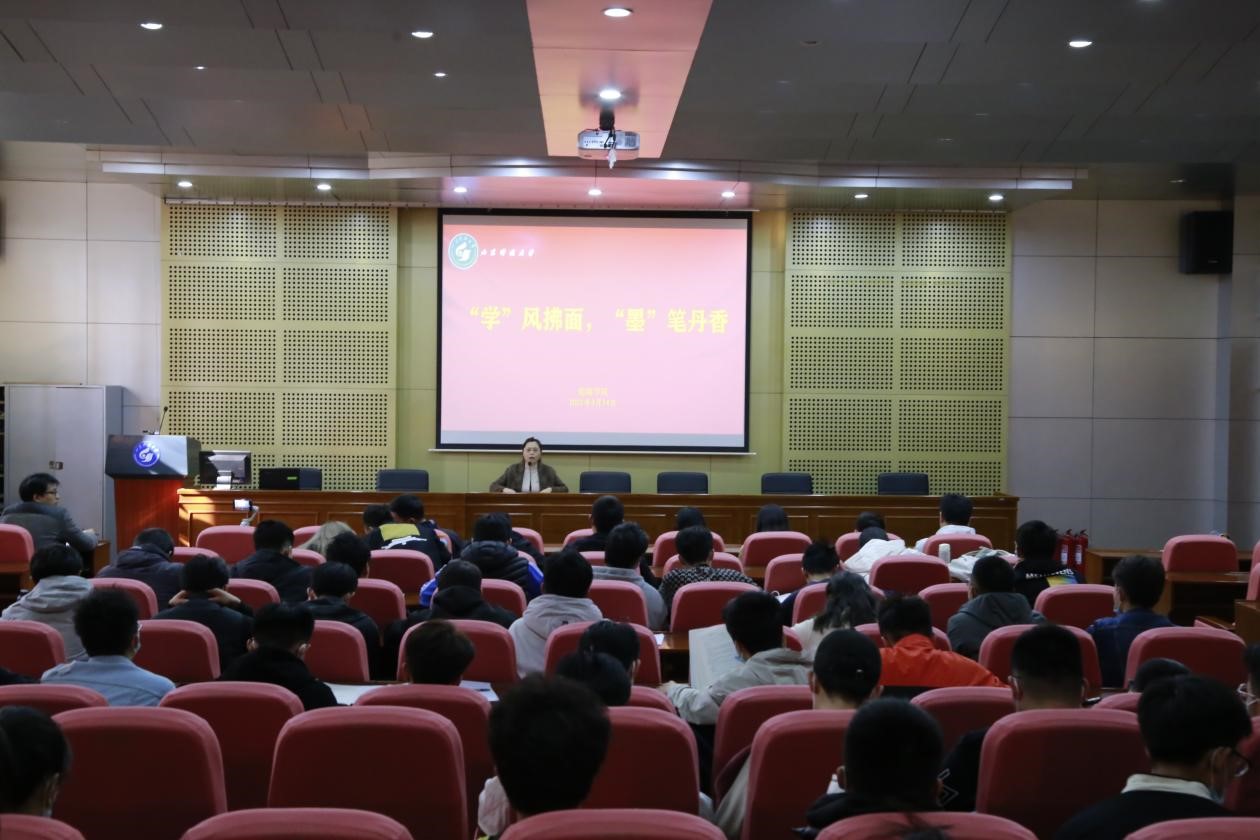 许琳以《“学”风拂面,“墨”笔丹香》为题,为同学们上了一堂专题思政课。她结合自身工作经历及2021年学校硕士研究生招生情况,指出“四风”建设对学院健康持续发展的重要性,良好的学风、校风可以促进学生奋发向上,严以律己,增长才干,重塑自我。许琳强调,优良的学风离不开思想上的教育、严格的管理、师生的共同努力、长久的坚持和榜样的树立,希望同学们明确学习目标,端正学习态度,追求真理,与书为伴,知行合一,蹄疾步稳为学校发展、个人成长不断努力奋进。