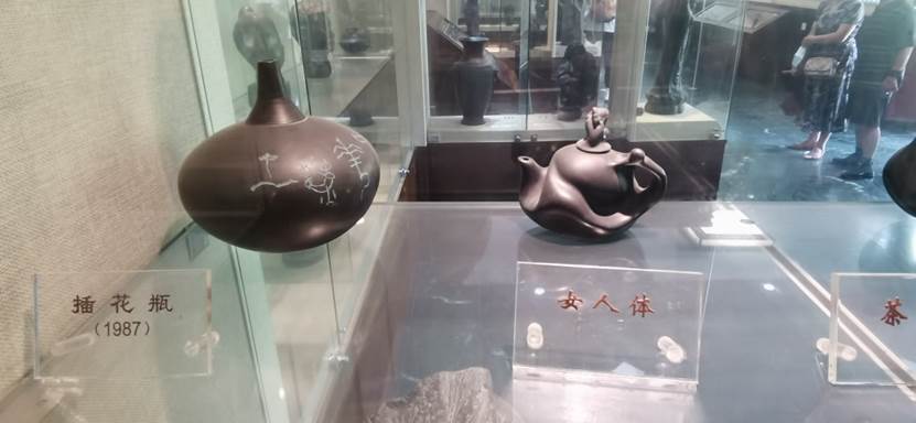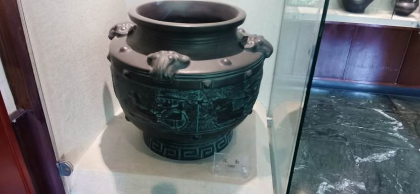 团队成员追随工作人员的脚步,参观了整个博物馆陈列的黑陶作品。“雕刻带有字的黑陶瓶,需要把字的立体感体现出来,后期还要用工具手工打磨出黑陶的光泽。从选泥到烧制完一个作品至少需要72道工序,这个作品光雕刻就需要7到8天时间……”馆内工作人员介绍到。伴黄河而兴,黑陶是具有广泛群众基础的非遗技艺。“我从小就在黄河边长大,没事儿就去挖泥巴、捏泥人,对黄河有种特有的感情。”采访的参观者说到这里神情动容。