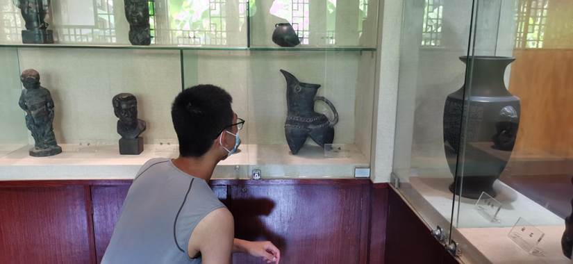 本次实践主要通过了解黑陶文化,进一步深入黄河流域的文化底蕴,通过了解黑陶的制作过程、黑陶的泥土材质,进一步加深对黄河水质的了解。据馆内工作人员介绍,制作黑陶的原材料是“红胶泥”。胶泥本是黄土高原上的泥土、矿土中黏性极强的小团粒,经黄河水带入中下游地区。经过千百年沉积,在漫长的运河流域河床下形成了比胶泥更细腻百倍的红胶泥。