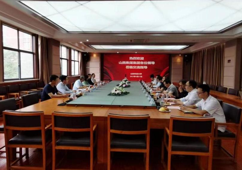 2023年5月27日,山西焦煤集团有限责任公司技术中心主任杨彦群、副主任李丽绒,山西焦煤集团山煤国际能源集团总工程师韩磊,山西煤炭协会绿色开采委员会秘书长张春燕,山西文龙中美环能科技股份有限公司董事长江河等一行来学院进行合作交流。交流活动前,学校校长曾庆田会见了客人一行,对杨彦群主任一行的来访表示热烈欢迎,双方表示今后将进一步加强交流与合作,共促发展。
