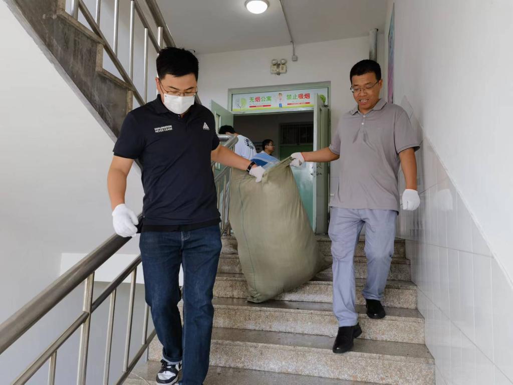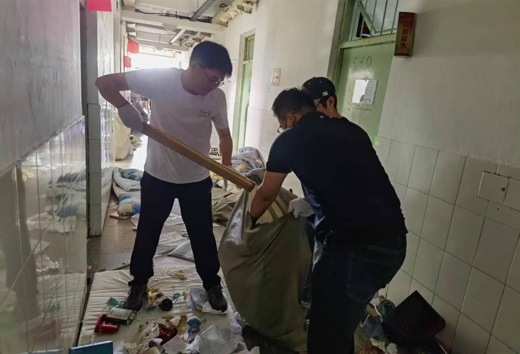 不同于以往传统课堂的书面教学,第一版主 的教师党员成为这堂思政课的带头人,他们深入学生宿舍,与同学们一起沉浸式体验这堂特殊课程。宿舍楼内,老师们与同学们一起清扫垃圾,帮助毕业生们归置物品,在劳动实践中引导同学们从经验中汲取智慧和启发,认识自我、发现潜能,实现个人成长和社会责任的转化,进而树立正确的人生观和价值观。