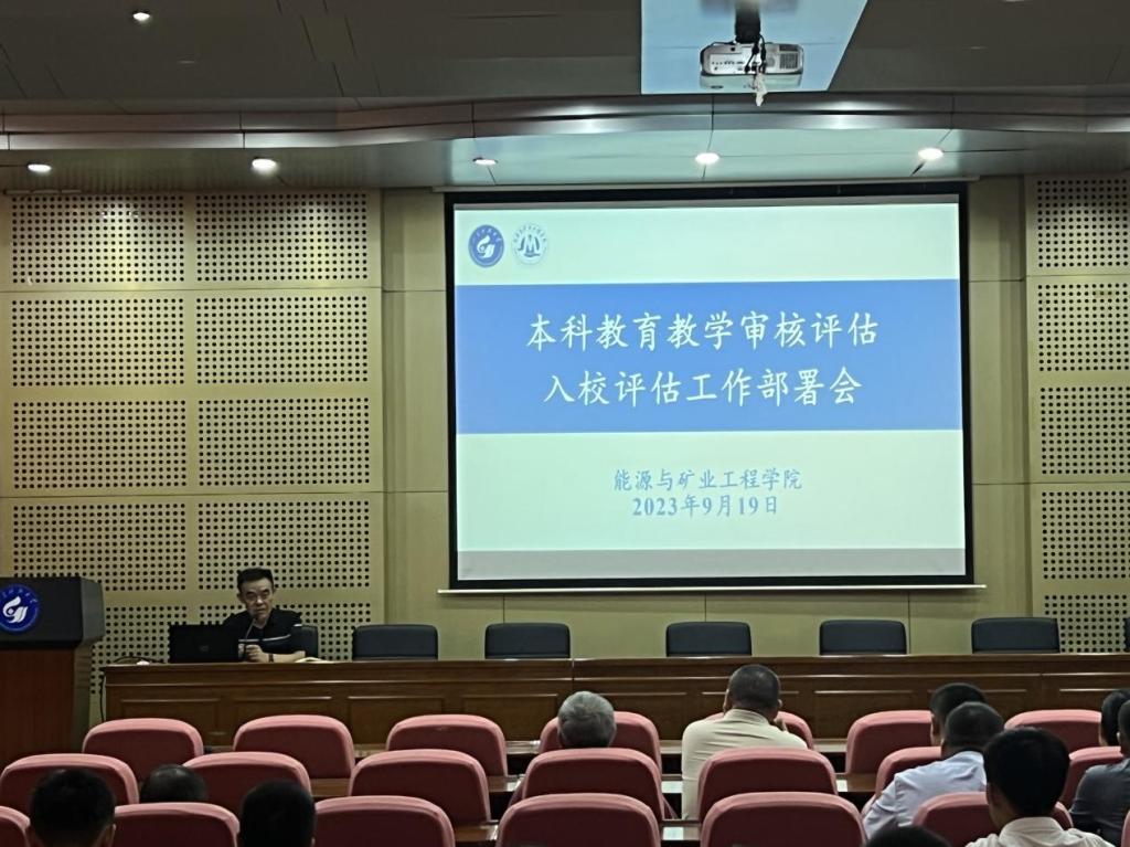 在J4-101报告厅召开审核评估入校评估工作部署会。会议由党委书记卞西春主持,学院党政领导班子成员出席会议,学院全体教职工参会。