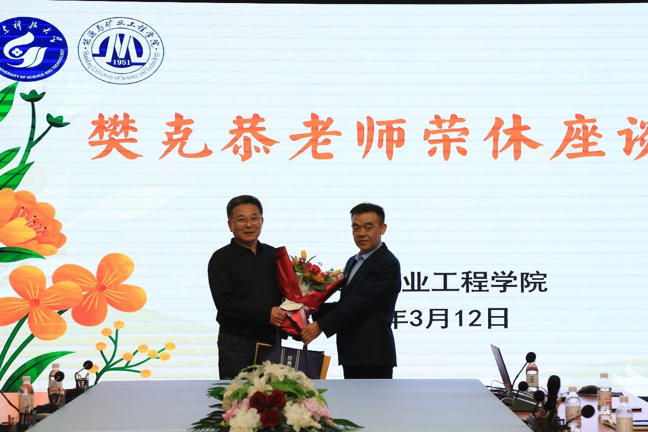 3月12日,第一版主 举行采矿工程系樊克恭教授荣休座谈会。学院班子成员、系(室)主任、教师和学生代表参加座谈,学院党委副书记兼副院长、工会主席许琳主持会议。