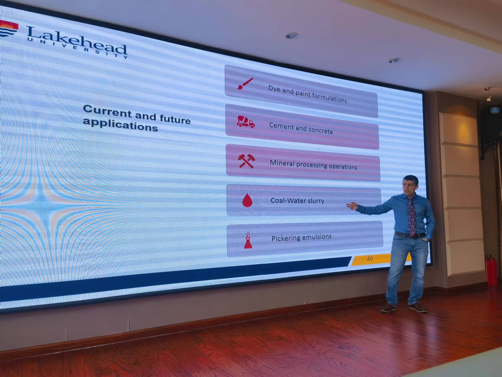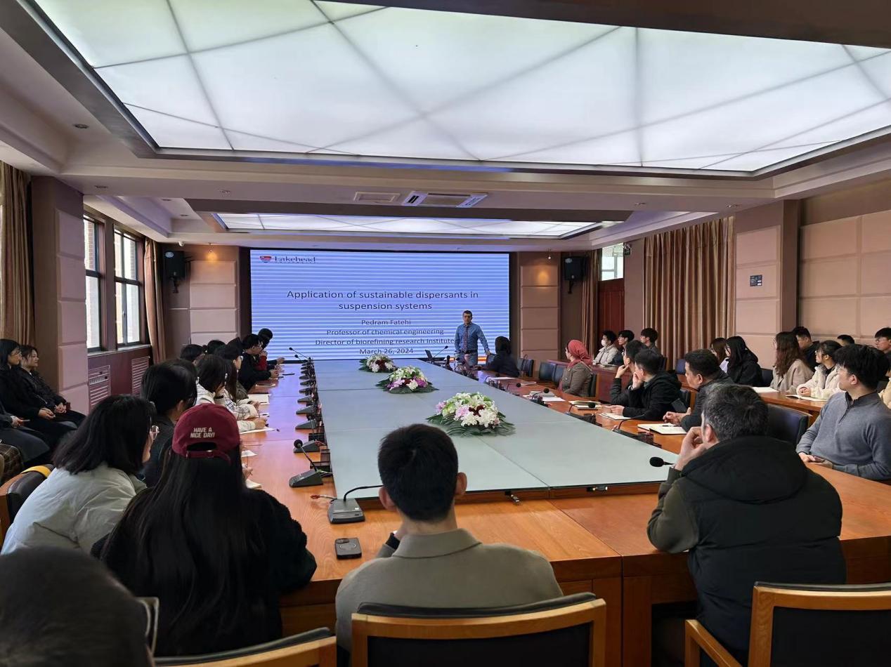 Pedram Fatehi教授为学院师生作了题为《Application of sustainable dispersants in suspension systems》的学术报告,Pedram Fatehi教授首先向大家介绍了湖首大学和本人课题组的基本情况,展示了课题组的实验室布局、设备情况和人员组成。重点讲解了木质素基分散剂的研究背景、原料来源、制备与改性工艺、分散机理以及木质素基分散剂在水煤浆、建材和水性涂料等领域的应用情况。报告会后,参会师生就木质素基分散剂与其他研究方向的交叉融合、教师访学和学生联合培养等问题与Pedram Fatehi教授开展了细致的交流研讨,为后续进一步开展学术合作和国际交流奠定了良好的基础。(通讯:柳慧敏 责编:陈冲 审核:许琳)