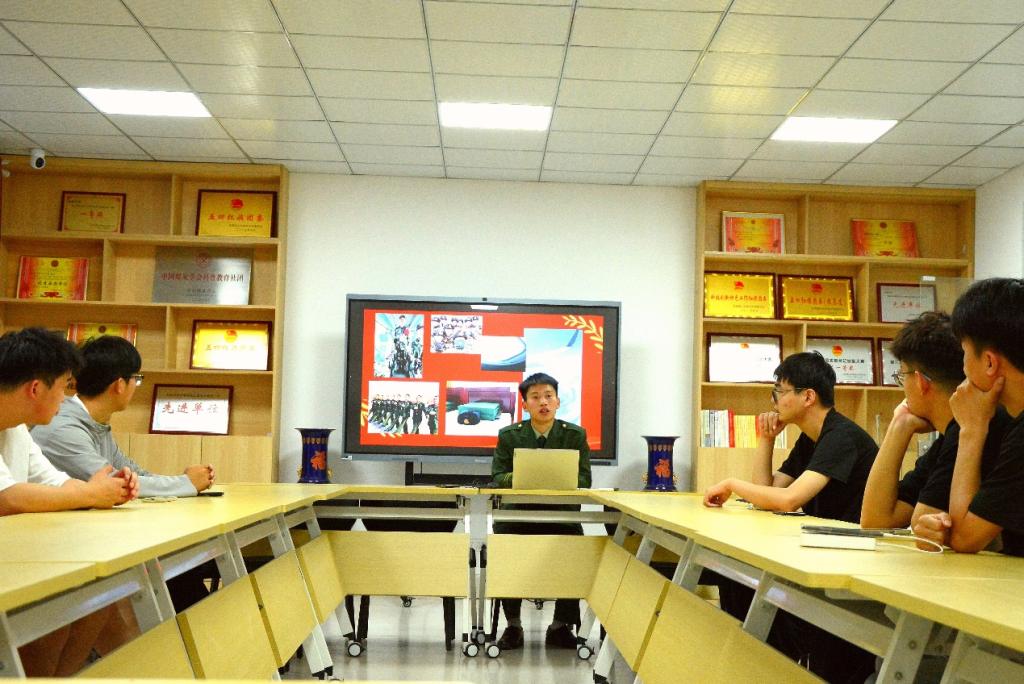 为进一步贯彻落实国家征兵政策,鼓励毕业生积极应征入伍,5月31日,第一版主 在“一站式”学生社区“嘉源驿站”开展“携笔从戎,逐梦军营”征兵宣讲活动。活动特邀校国防先锋营教导员、退役复学学生胥林凯担任主讲人,团委优选计划辅导员付晓鹏、各毕业班参军意向人员参加活动。