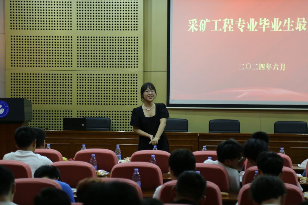 毕业生“最后一课”以采矿专业、工业专业、力学专业分别进行,各专业老师们回忆了与同学们一起上课、实习的点点滴滴,并向大家圆满完成学业表示祝贺。老师们解答了毕业生们关于研究生学习、职业规划发展中的疑惑,勉励同学们在未来的工作和生活中,坚守正确的价值追求和行为准则,修身立德、行稳致远、进而有为;坚持不断学习、热爱生活,在实践中历练成长,朝着自己的人生规划和发展目标不懈奋斗。毕业生们也纷纷上台发言,分享自己的收获,诉说对母校、学院和老师们悉心栽培的感恩之情和对即将离别、各奔前程的同学们的不舍与祝福。