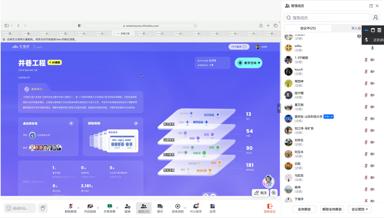 会议围绕智慧课程的建设与应用、AI技术在教学中的创新实践、以及混合式教学模式的探索等核心议题展开。智慧树张媛媛老师通过案例分享、实操指导等方式,重点解析了混合式教学的方式方法,直观展现了信息化条件下混合式教学设计的效果,并对参会教师给予个性化指导。与会教师也通过积极参与互动,围绕混合式金课建设与运行使用进行了充分沟通交流。